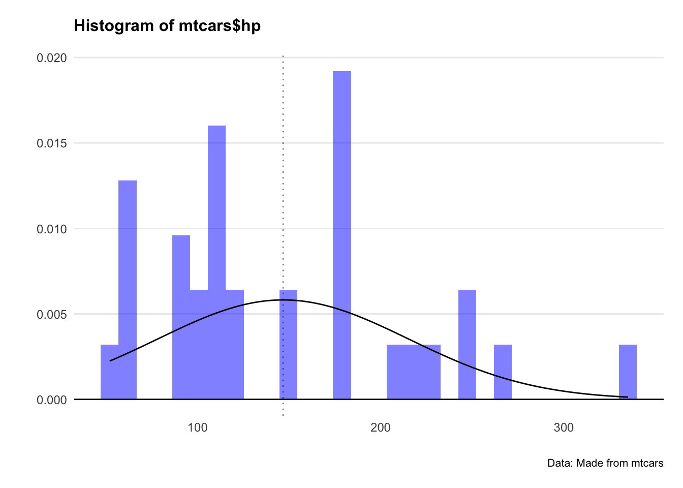 geom_vline(xintercept = mean(mtcars$hp), linetype = "dotted", alpha = 0.5) +