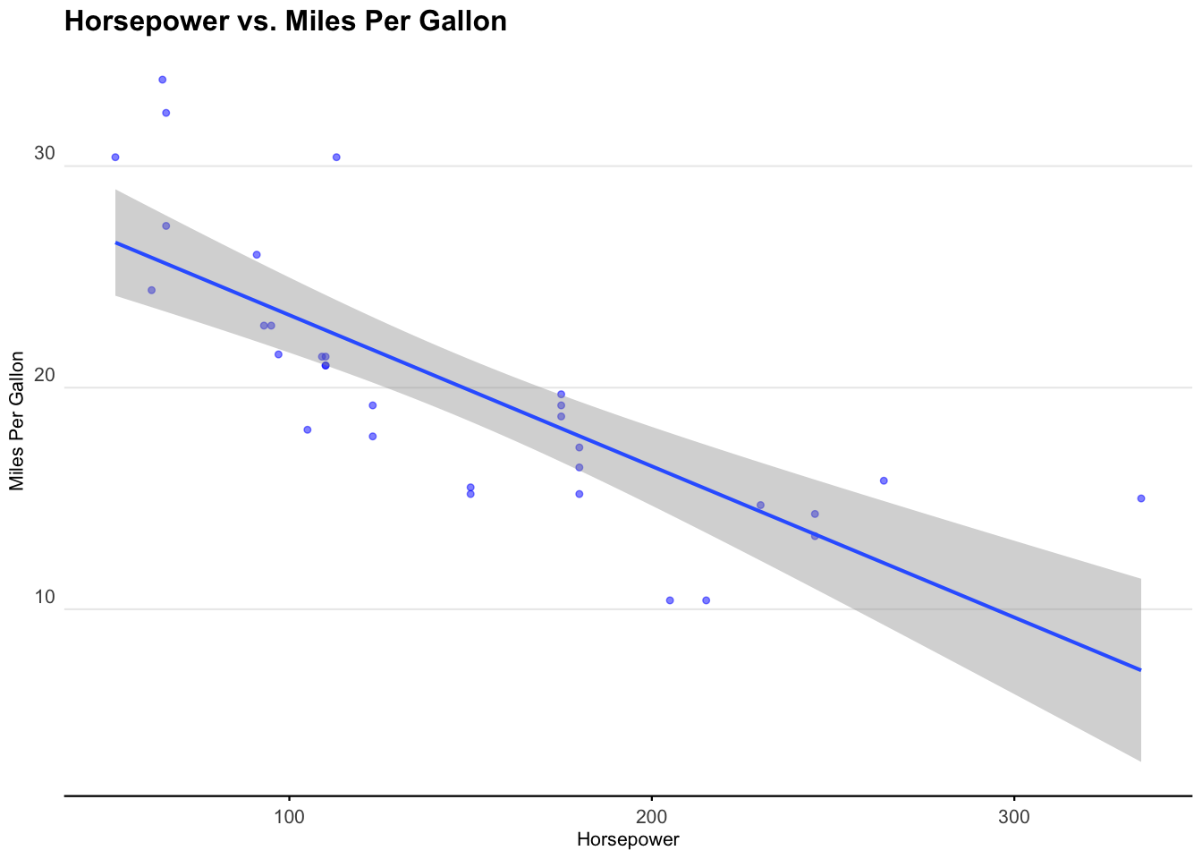 title = "Horsepower vs. Miles Per Gallon",