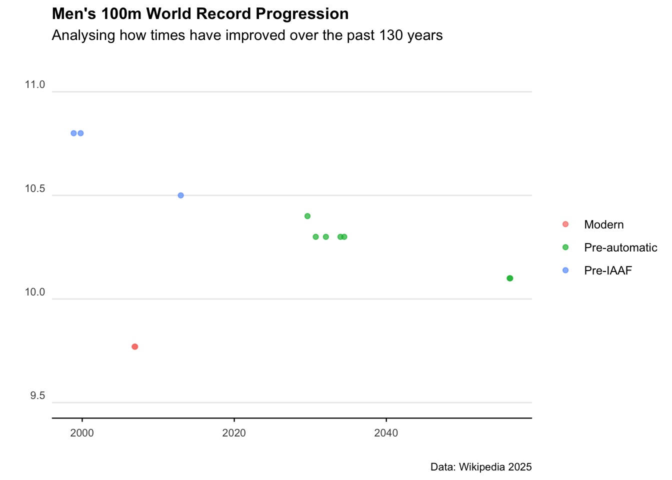 title = "Men's 100m World Record Progression",